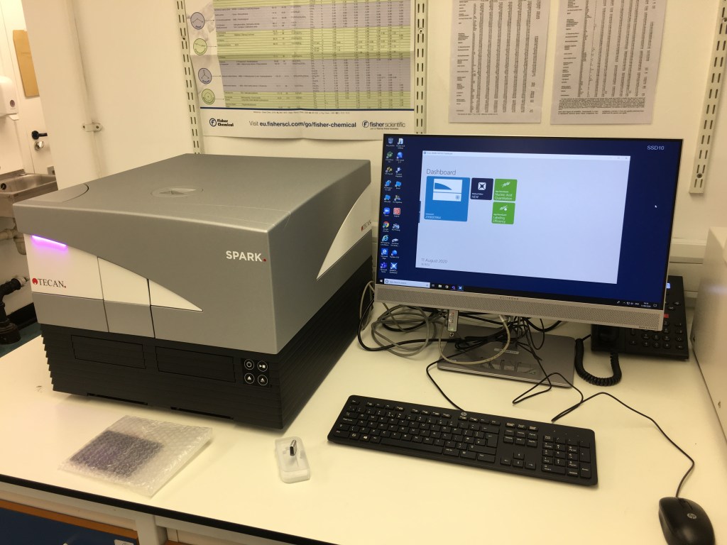 Tecan Spark Absorbance and Luminescence Plate Reader with monochromators, temperature control, TR-FRET capabilities etc. Auto-injectors, combi-optics and plate robotics planned for future upgrades!
