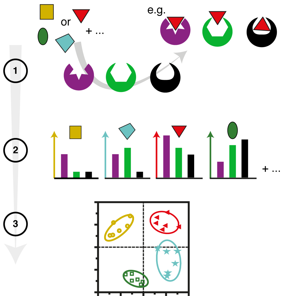 Coupling arrays of molecules and nanosurfaces, with statistics and machine learning, to sense, discriminate and analyse complex mixtures.